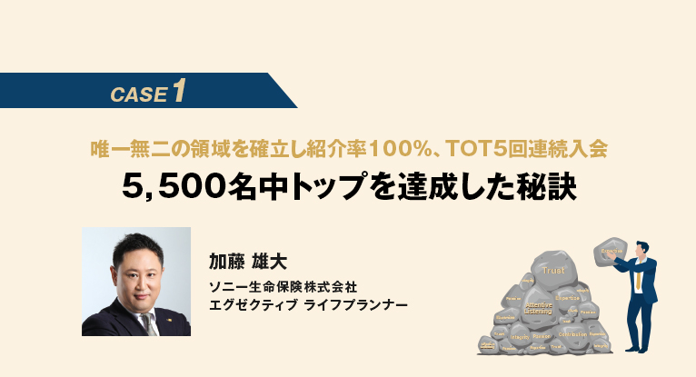 ソニー生命 エグゼクティブ ライフプランナーとして、事業承継・資産承継・M&A支援を専門に活動している加藤氏。MDRTに10回入会していたものの3倍の基準であるCOTには及ばず、2017年2月にアチーブメントを受講。目的から一貫したセールスを実行し、COT1回、TOT5回を達成。2024年3 […]